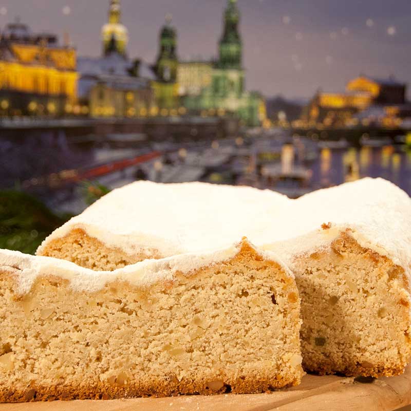 Unser Original Dresdner Christstollen wird nach handwerklicher Tradition und mit besten Zutaten gebacken. Wir verwenden nur reine Butter, frisch gehackte Mandeln, in Jamaika-Rum eingelegte Rosinen sowie Orangeat und Zitronat aus einer italienischen Manufaktur.